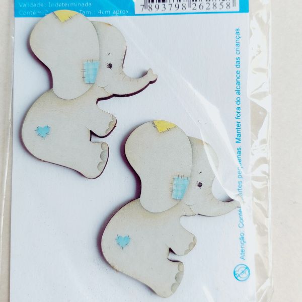 Aplique elefante com detalhes em azul em mdf e papel, para artesanato e decoração em geral.