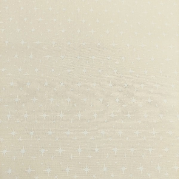 Tecido tricoline com estampa natalina no tom de bege com estrelas brancas.