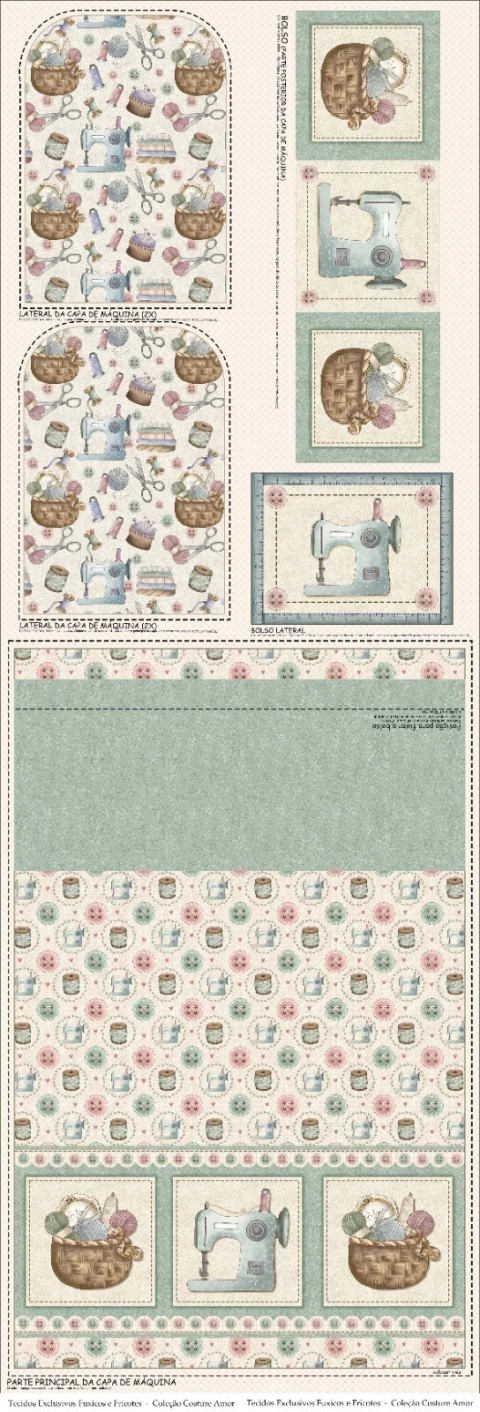 Tecido tricoline digital para patchwork 100% algodão PAINEL com estampa de capa de maquina e modo de fazer, para uso em peças artesanais, vestuários, patchwork, patchaplique e artesanatos em geral.