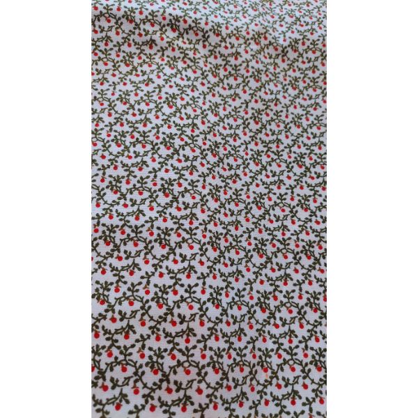 Tecido Tricoline para patchwork 100% algodão com estampa mini floral e folhagens em fundo off white para uso em peças artesanais, vestuários, patchwork, patch aplique e artesanatos em geral.