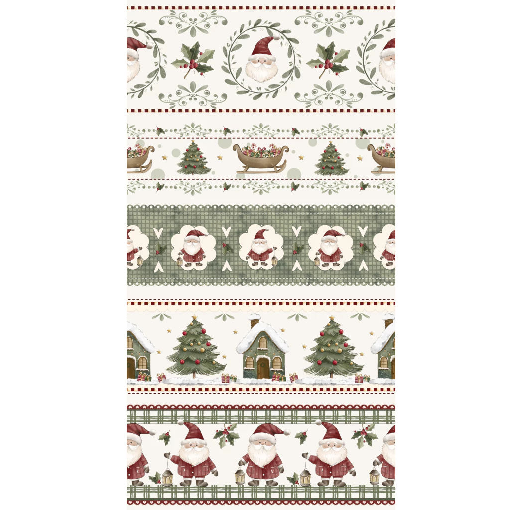 Tecido tricoline para patchwork 100% algodão com estampa natalina em faixas para barrados, sendo cada faixa uma estampa, para uso em peças artesanais, vestuários, patchwork, patchaplique e artesanatos em geral.